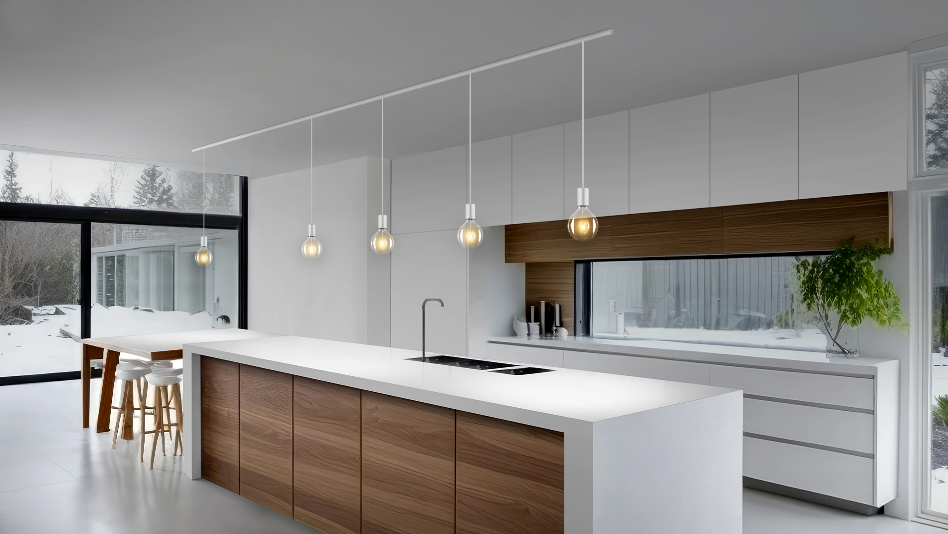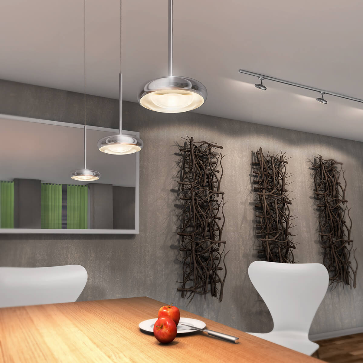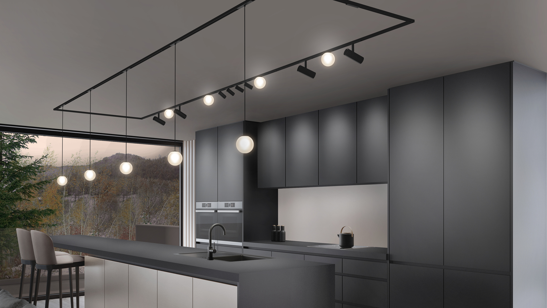 Whether a single decorative pendant light, single or double spotlight or in combination with a BRUCK track system.