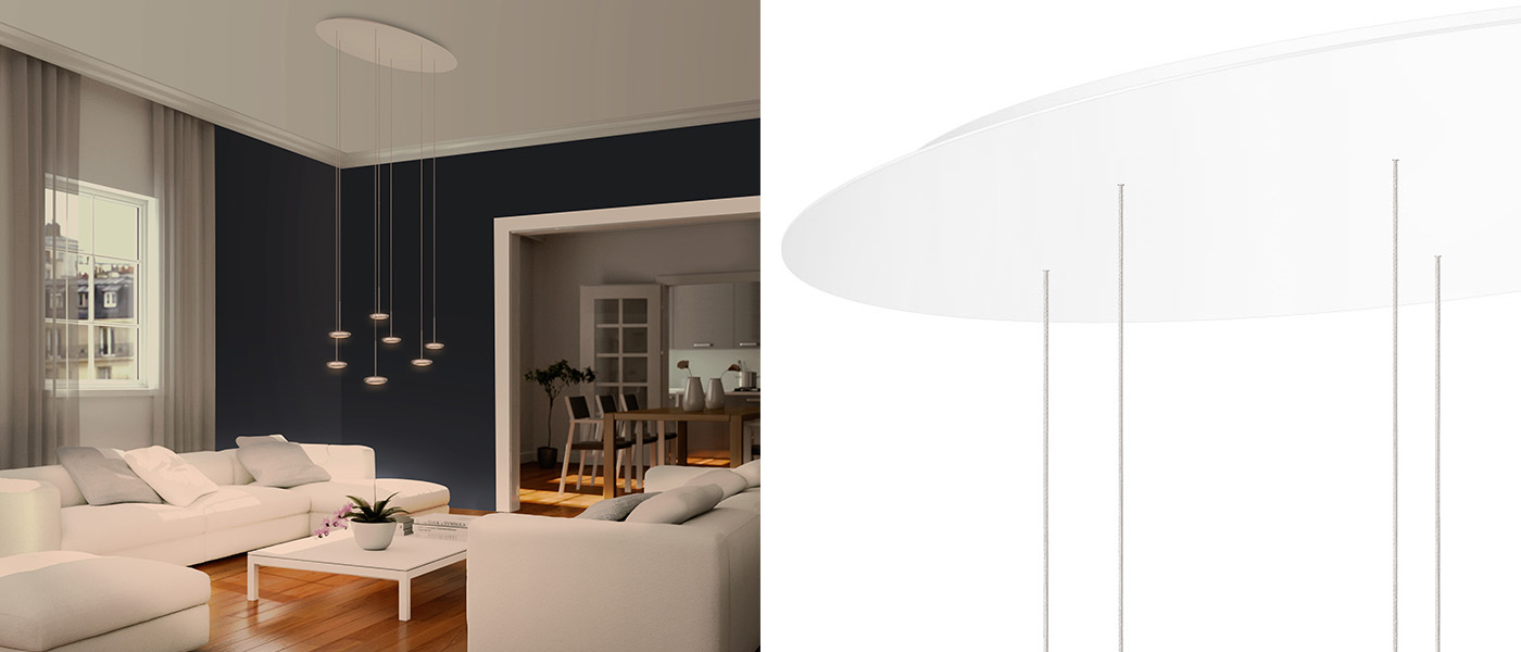 Whether you want to stage a single pendant luminaire or connect several luminaires from a single power outlet - with a BRUCK canopy, your lighting concept remains flexible.