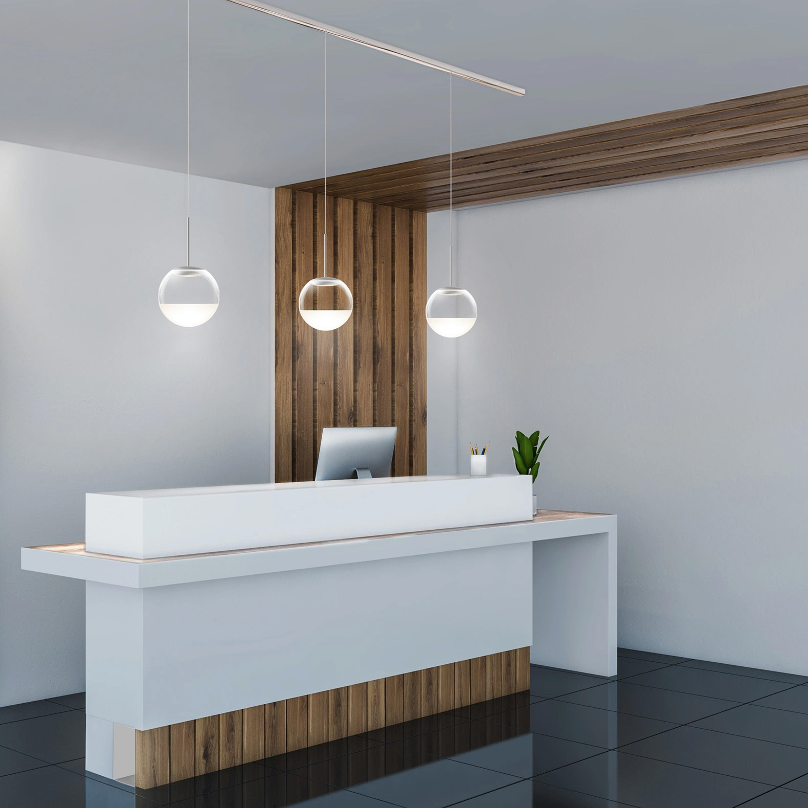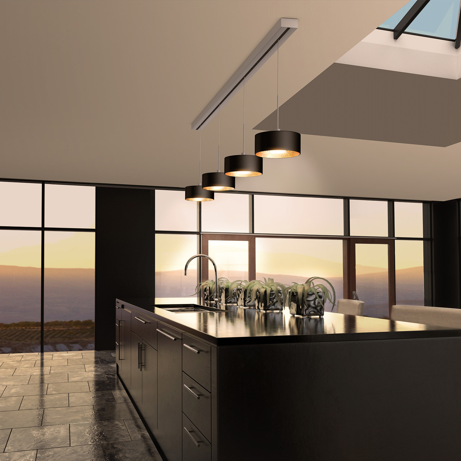 Our pendant light designs are available as individual lights in a row with an elongated canopy and with an adapter as an addition to our BRUCK track system.