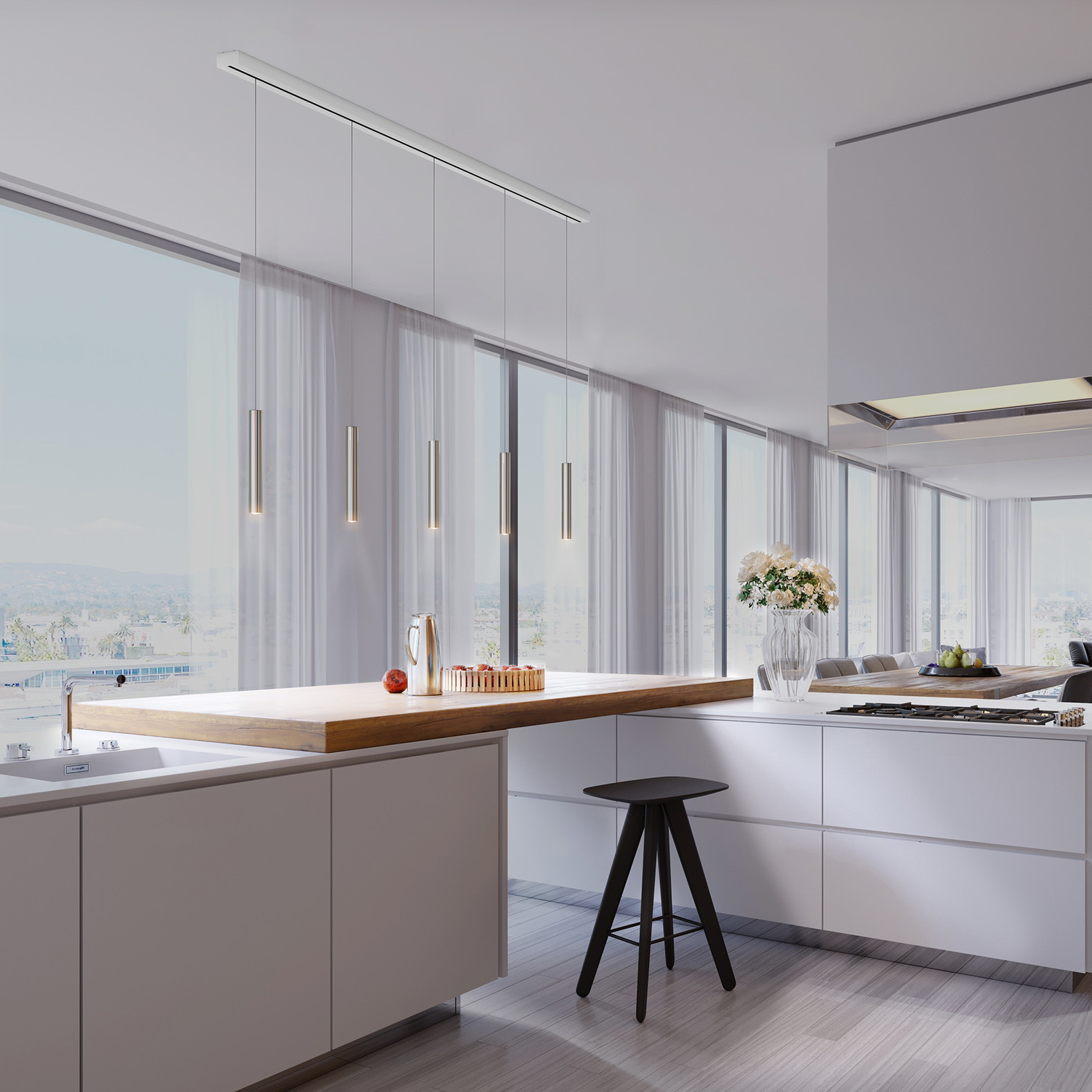 They can be placed as individual pendant lights above the sideboard or coffee table TV board. Or they can be integrated into a multiple canopy or a modern track system from BRUCK above the cooking island, for example. This allows you to create harmonious lighting with recurring design elements.