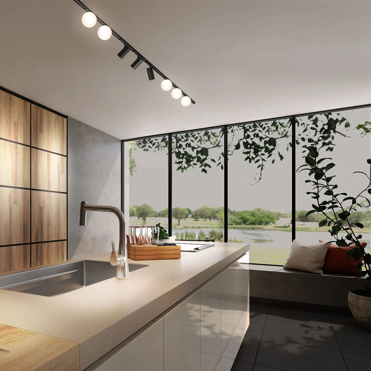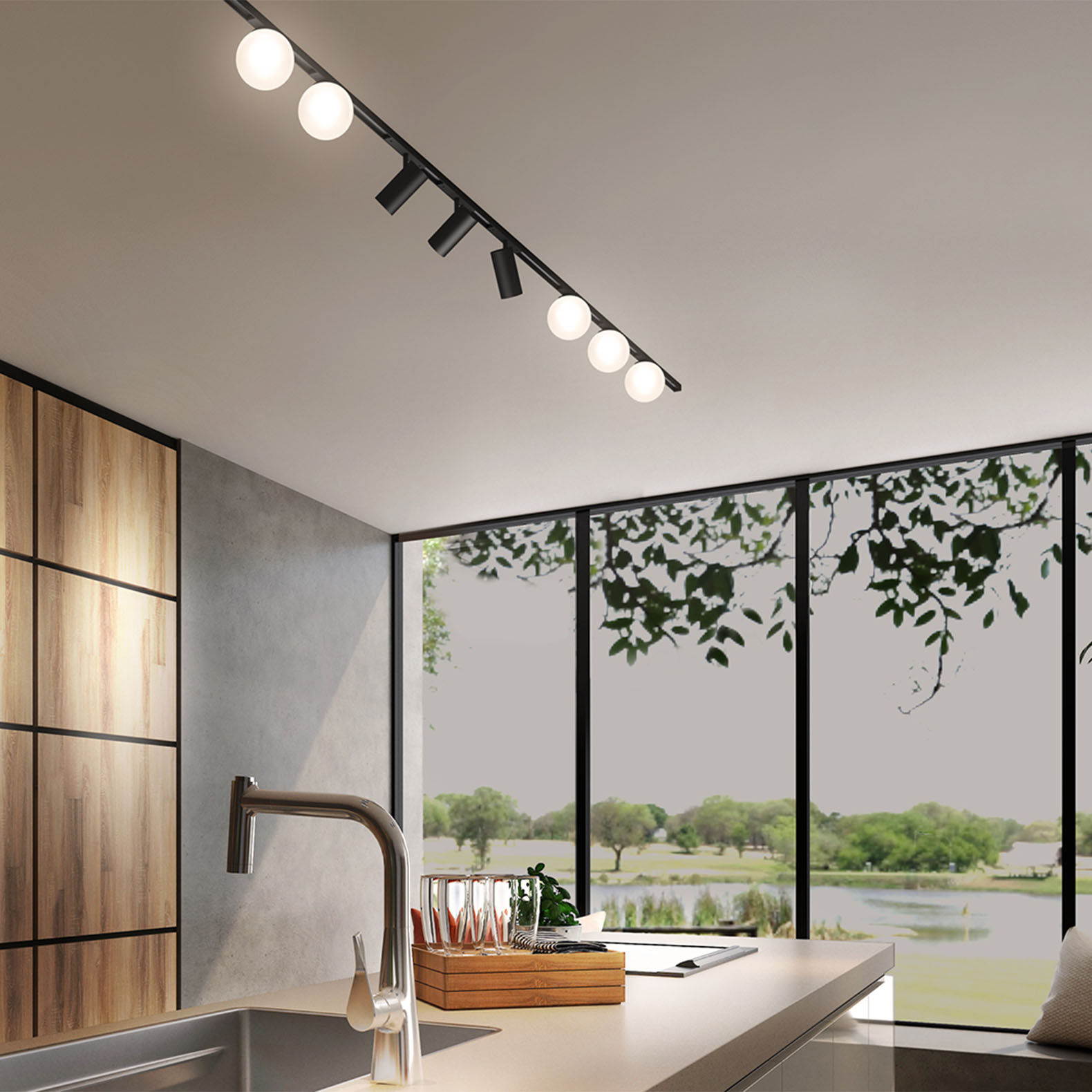A track system allows you to place multiple spotlights along a power rail – using only one power outlet. BRUCK track systems can be individually configured, expanded, and combined with both spotlights and pendant lights. Benefits: easy installation, flexible adjustment, modern aesthetics.