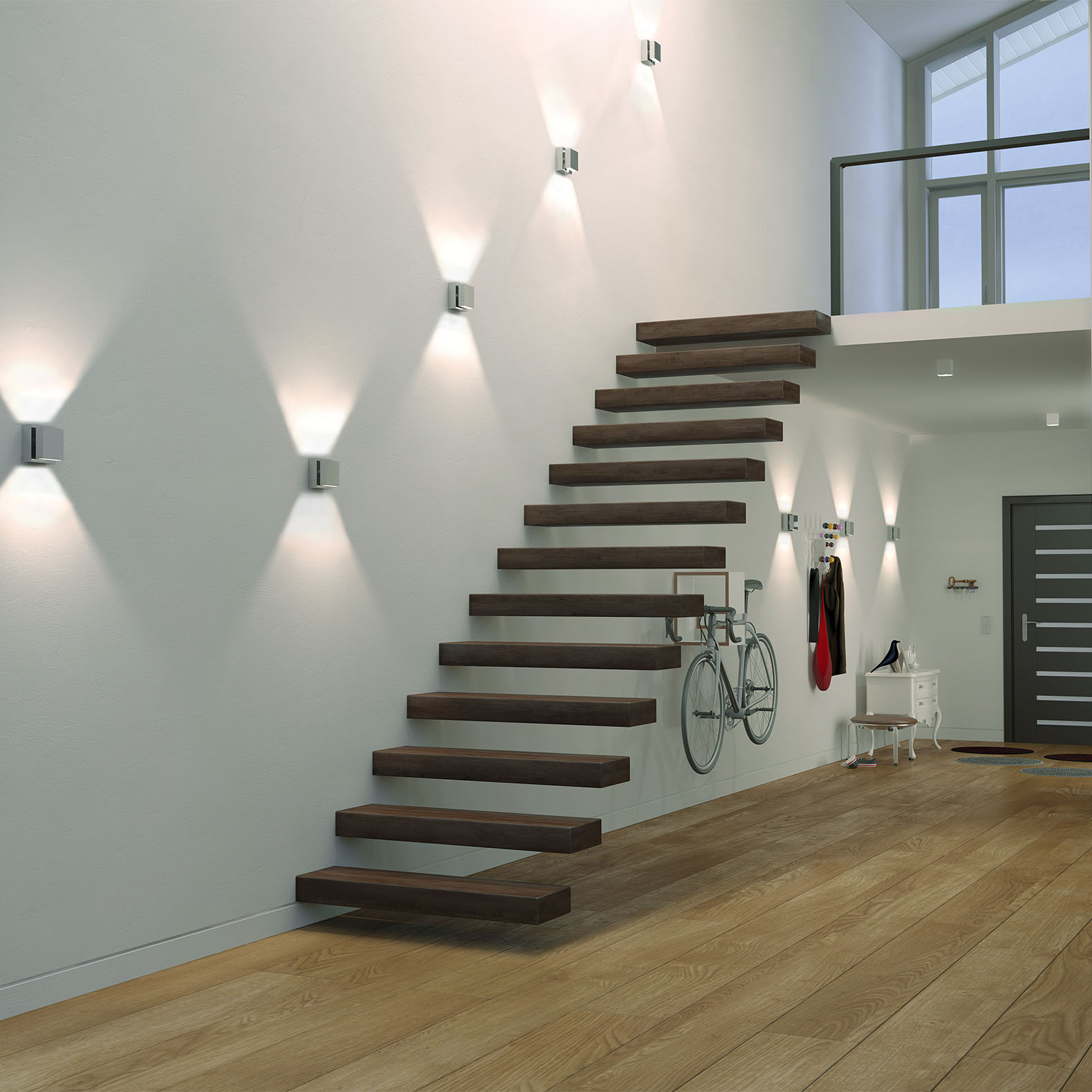 emit light both upwards and downwards. The result is an atmospheric, symmetrical lighting effect on the wall - suitable for area staging, in corridors, living areas or as a design element in modern room concepts. For example SCOBO UP+DOWN LV W or CRANNY.